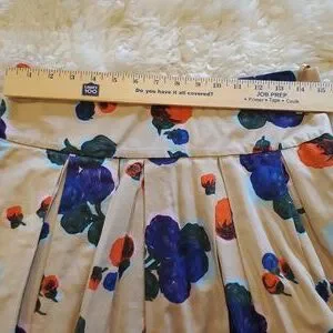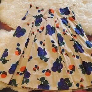 Fully lined, has volume, two side pockets, pleated, knee length, side zip.