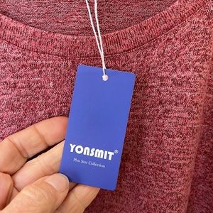 NWT{Yonsmit}Woman’s Sz 22W Wine Red Knit Top w/pockets