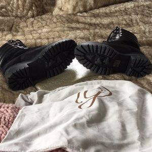 Black leather and suede moto boots made in Italy size 8 fit more like 7 1/2 wore about 3xs just a little snug for me I’m a true 8