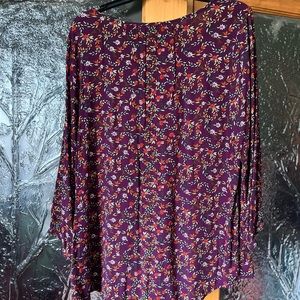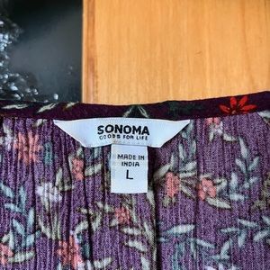 Women’s LS Sonoma Blouse. Purple background with Pretty Flower detailing. Functional Rope Tie Front Detail. Size L. PTP 21" Length 26". 100% Rayon Gently worn. Bundle and/or make an offer. Have a great day