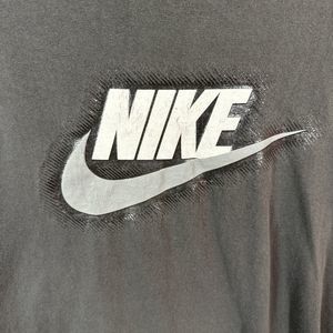 Nike Men T-Shirt Large Gray Y2K Swoosh Big Logo Crew Neck Short Sleeve Vintage