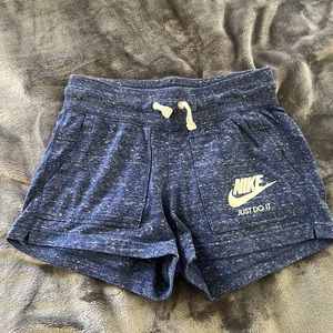 Nike cotton shorts. Excellent used conditions. Super soft and comfy. Perfect for lounging around the house. Color is a Heather navy blue