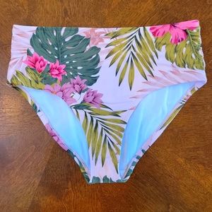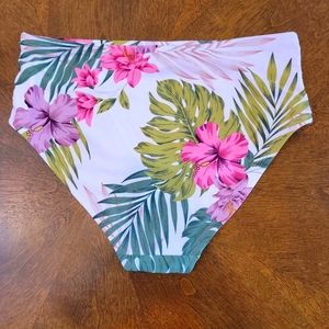 High Waisted, Tropical, Bikini Bottom from KONA SOL. Made of Nylon & Spandex. Plastic Tag Still Attached to Inside Waist Tag; but No Price Tag.