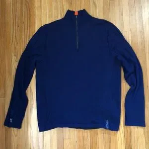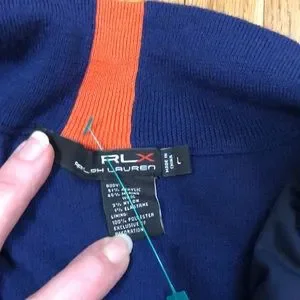Ralph Lauren RLX men’s navy blue knit golf sweater. Half zip with a nylon wind stop lining in the front. EUC Please see photos for details and measurements. Visit my closet for more great stuff. I love bundles and offers.