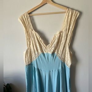 1940’s PLUS SIZE Joy Lingerie Co. Blue Satin Cream Lace Maxi Slip Dressing Gown