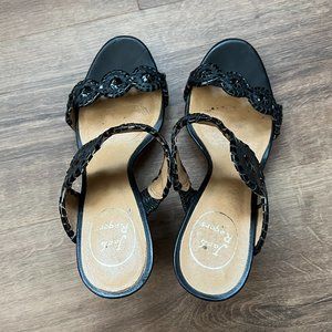 Jack Rogers Black Luccia Leather Wedge Sandal Sz 7.5