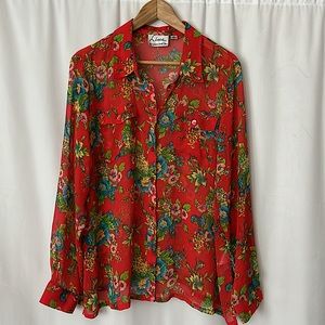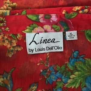 Beautiful Linea by Louis Dell’Orio Orange Floral Long Sleeve Blouse Shirt Top. Size XL.