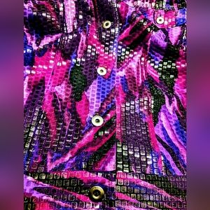 Make a Statement in this Fun Notations, Button Front, Lightweight, Shimmering Shacket, Size 3X.