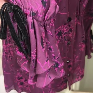 100% silk Long sleeves with tied cuffs, V-neckline,