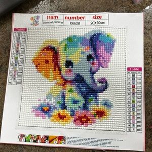 8”x8” Finished Watercolor Elephant Diamond Painting