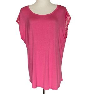 EXTRA TOUCH Sleeveless Top Solid Front Open Crochet Lace Back Pink 2X NEW