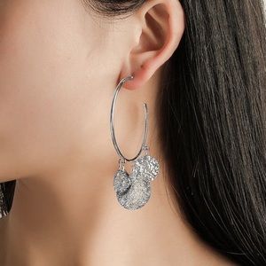 Any 3/$25! Silver Hoops w/Dangling Discs Stud Earrings