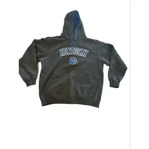 This Team Edition Apparel hooded sweatshirt is gray with classic UK blue and white embroidered lettering and basketball. Show your Wildcat pride! Unisex size large. Excellent smoke free condition.