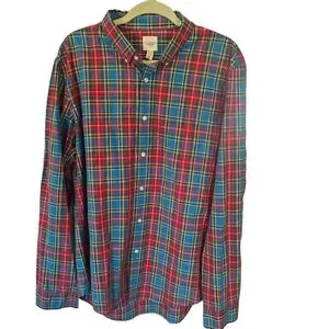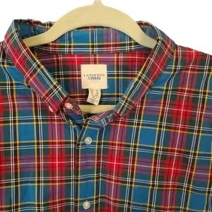 Lands End Men's Plaid Button Down Dress Shirt XXL NWT Red & Blue