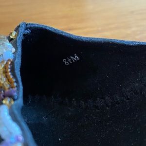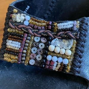 Rylee Leather Beaded Wood Heel Boho Chunky Heel Slides SZ 8.5 in Black