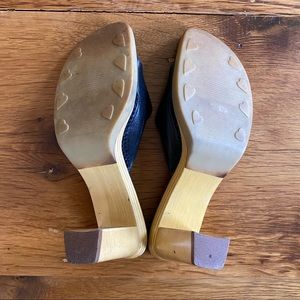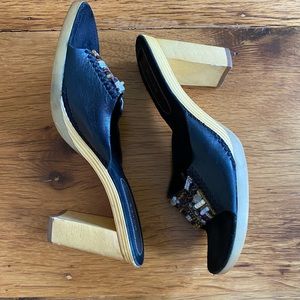 Rylee Leather Beaded Wood Heel Slides SZ 8.5 in Black
