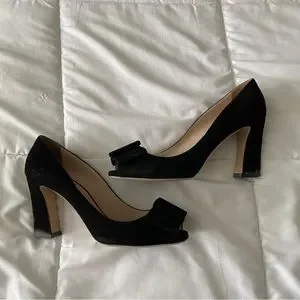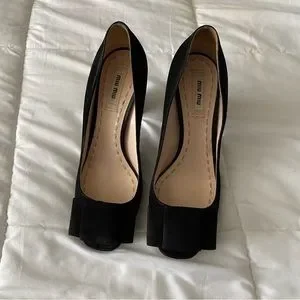 Miu Miu Black Suede Bow Peep Toe Pump