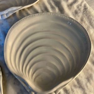 Pottery Barn Clam Shell Plates, large slightly over 9” heavyweight, realistic design pattern