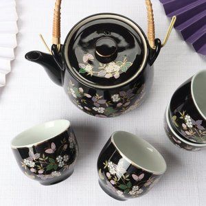 Set includes 1 teapot with a bamboo handle and 4 cups
