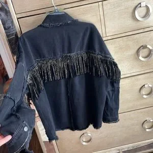 Zara denim jacket with fringe, size M