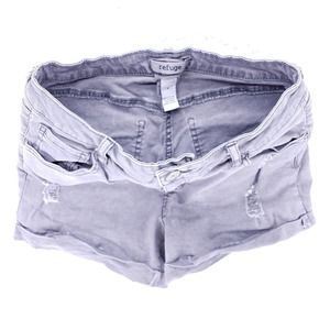 Refuge Light Gray Destroyed Rolled Cuff Shorts Women Size 6 Mid Rise Denim Pants