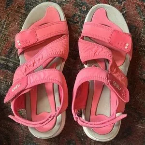 They are Ryka brand outdoor active sandals. They have a super cushioned foam sole with an extra raised support cushions on pressure point areas.