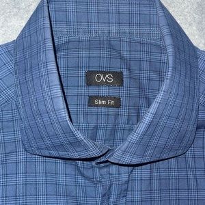 👔 2 FOR $20 👔 Men’s Blue Button Up Dress Shirt - OVS Italy - Slim Fit