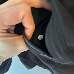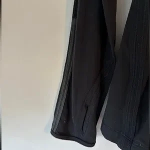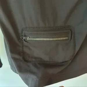 Size 12 black Lululemon, hiking or athletic shirt with some holes reflective stripes on sleeves and on really cool back zipper pocket