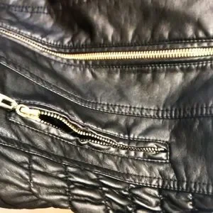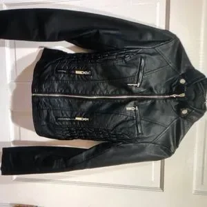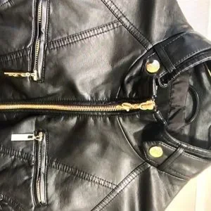 Women’s guess faux leather black moto style jacket with gold accents