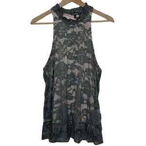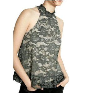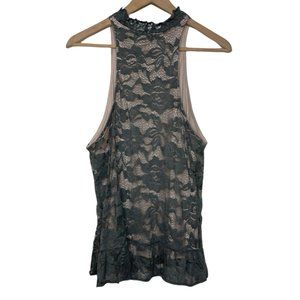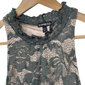 EXPRESS | Olive Green Lace Ruffle High Neck Sleeveless Peplum Blouse | Size L