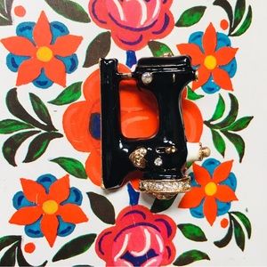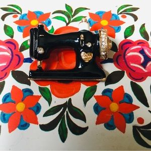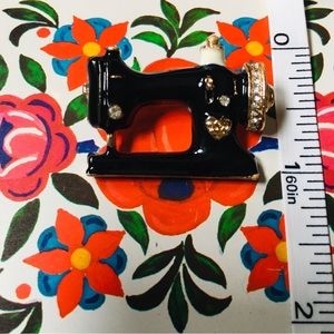 A beautiful sewing machine pin with faux diamond accents black, gold, white