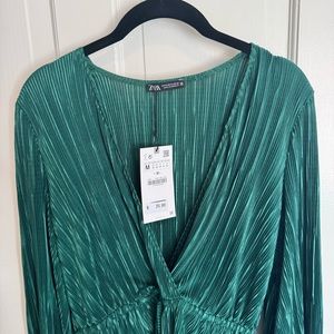 Zara Pleated Blouse in Green sz M NWT
