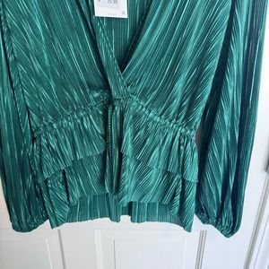 new with tags green pleated blouse