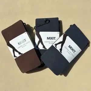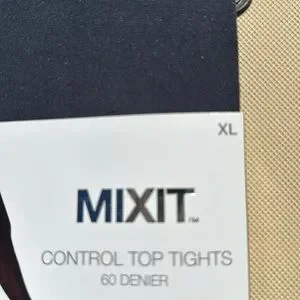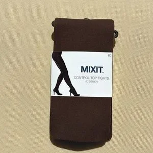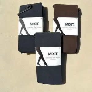 Mix it control top tights, navy blue and brown in size one X and also one navy blue XL by JCPenney. Regular price $14 each. Lot of three $42 value all brand new one side of package is loose from shipping. Please note 2 different sizes in here, thank you for looking.