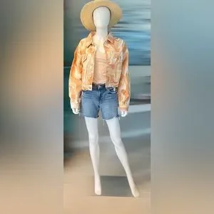 PEACH LOVE CALIFORNIA Peach and rust tie die denim jacket M L