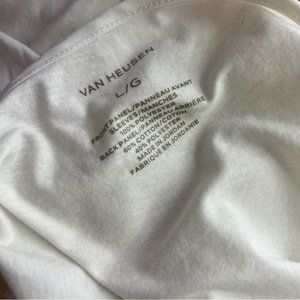 Van Heusen floral tshirt blouse white yellow green flowers flowy cute garden vibes. Size large. Like new. See photos for small run in fabric. Very cute floral top β¨βοΈπ