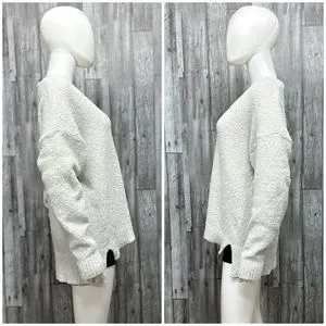 UGG Cecilia V-neck Pullover in Cream [723]. Size XL. A supersoft and cuddly knit brings huggable warmth and comfort to every second you spend in this plush V-neck sweater. 78% polyester, 22% nylon. Machine wash, tumble dry. Approx 23” long in front, 25” long in back, 23” armpit to armpit, 19” armpit to cuff. Very good pre-owned condition with normal wash and wear. Item #723