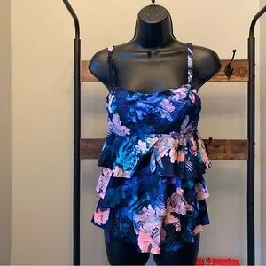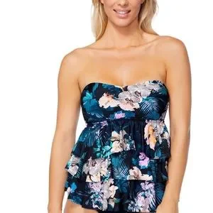 Island Escape Women's Tiered Tankini waist Minimizer bikini Top floral print 10