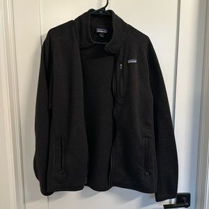 Gently worn black Patagonia zip-up jacket. Size large. Minor signs of wear but in good condition overall. Zip-up side pockets and chest pocket. Make your best offer!