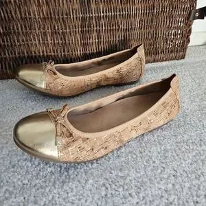 Vionic Cork Print with Gold Toe Ballerina Flats - Size 10