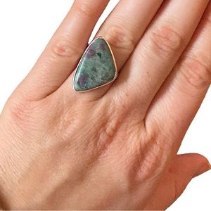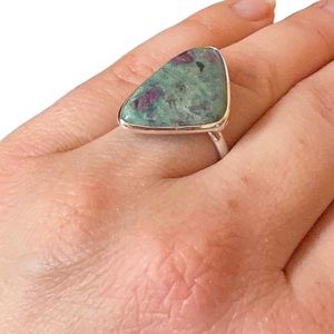 Natural ruby zoisite stone teardrop ring in sterling silver 925 size 7