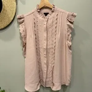 Ann Taylor Soft Pink Large Petite Eyelet Trim Sleeveless Top