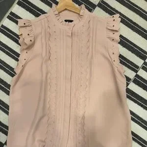 -Ann Taylor Soft Pink Large Petite Eyelet Trim Sleeveless Top