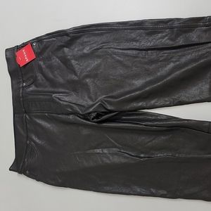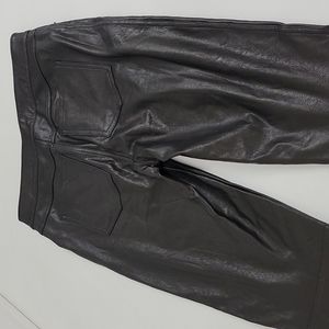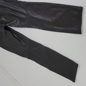 14” flat waist, 11” rise, 27” inseam, functional rear pockets, really nice look and feel to the faux leather
