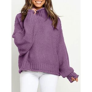 Oversized knitted pullover features turtleneck/cowl neck, oversized baggy style, hip Length, pull on closure, batwing long sleeve, dropped shoulders, cable knit tops, solid plain color knitted blouse.