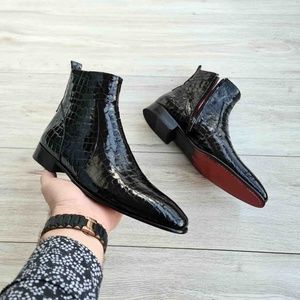 Black Men's Chelsea Croco Patent Leather Boots | Red Sole