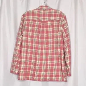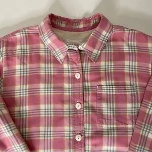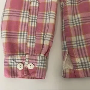 L.L. Bean Fleece Lined Plaid Flannel Shirt Jacket Pink White Sz M