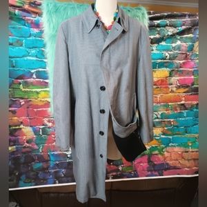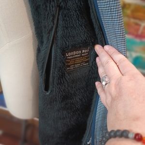 London Fog Men's Parliament Plush Gray Houndstooth Trench Coat Size 40 Reg