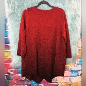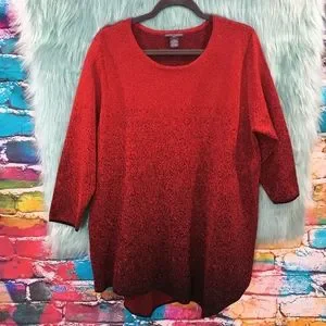 Chelsea and Theodore Red and Black Sparkly Long Half Sleeve Top Size 2X