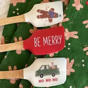 Kitchen towels with gingerbread man on them and 3 kitchen spatulas. Also 2 gingerbread man cookie cutters. All brand new.